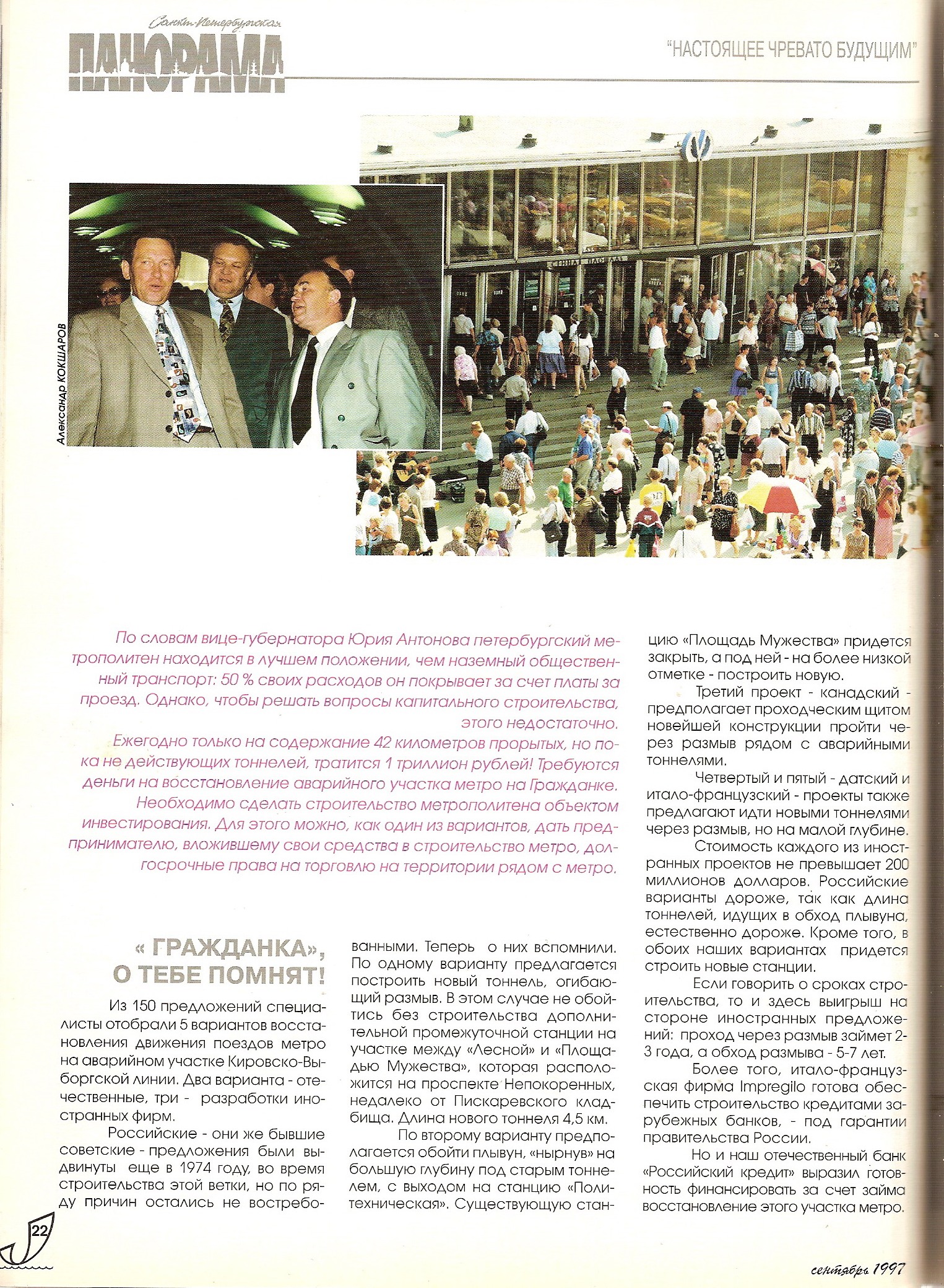 Коллеги, журнал за сентябрь 1997, а фотография входа в Сенную площадь уже без козырька, или мне кажется?