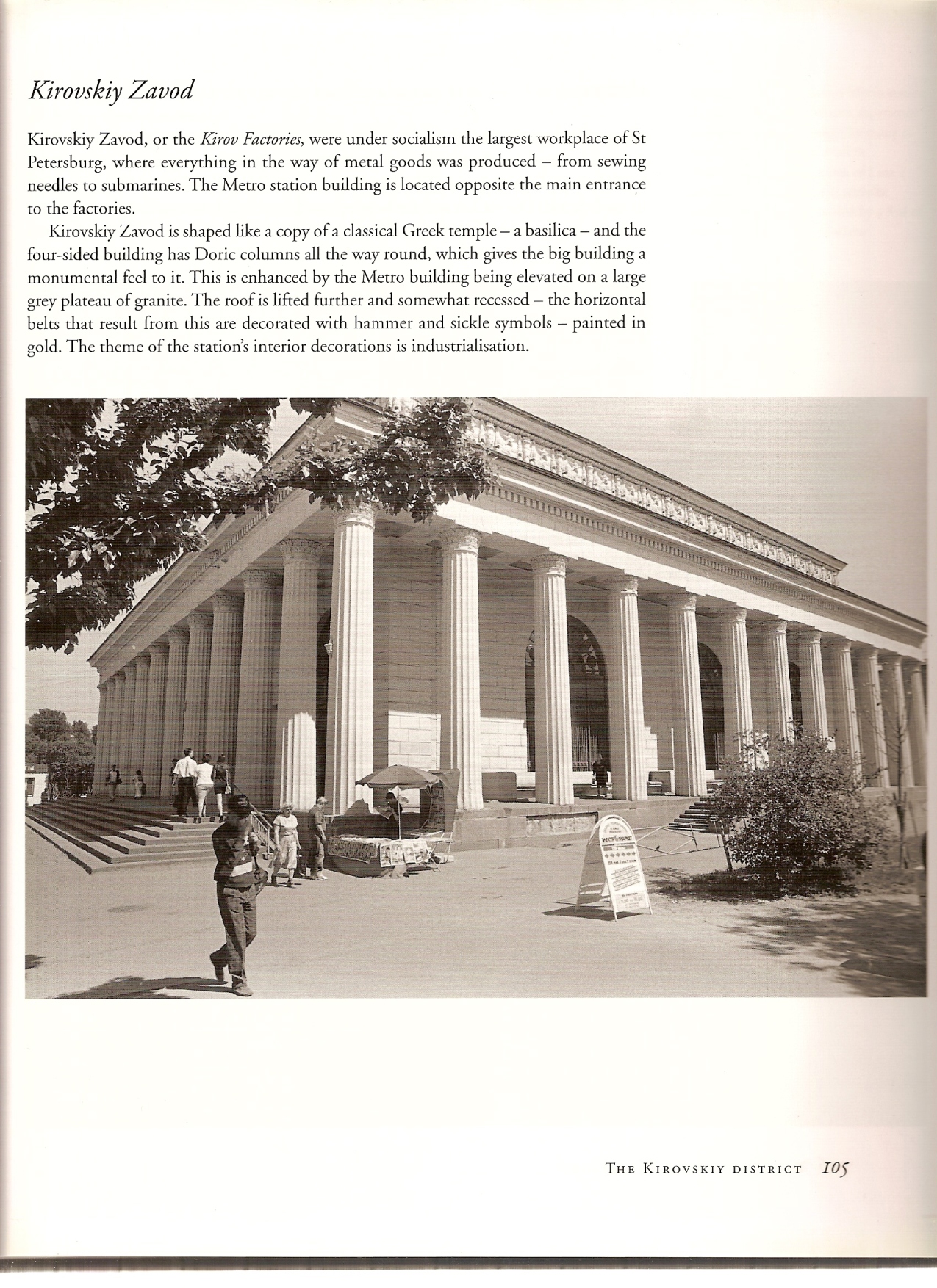 Сканы из книги "The unknown St Petersburg" изданной в Дании Датской академией искусств в 2003 году. Автор Андреас Триер Мёрх. Книга посвящена архитектуре Петербурга-Ленинграда 1917-1956 годов. Соответственно в поле зрения автора попали станции первого пуска. Фотографии второй половины 1990-х - начала 2000-х.