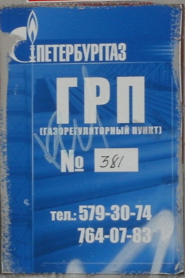 Рис 2. ГРП №381. Типовая бумажная табличка на двери Газорегуляторного Пункта.