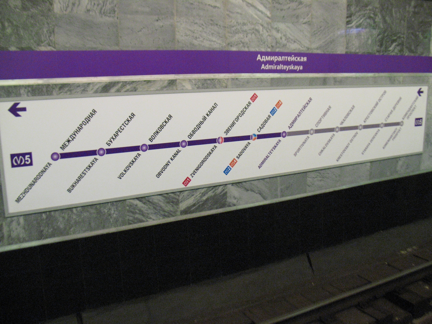 Вдогонку к предыдущему: на входных дверях Адмиралтейской в традиционном объявлении о времени отправления первых и последних поездов со станции ("в сторону станции...") также фигурирует уже не Волковская, а Международная. Интересно, изменилось ли при этом само время?
