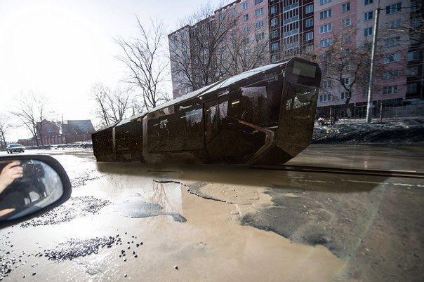 Это даже не смешно. Ё-трамвай. Дизайнерская пацанва явно находилась под впечатлением от какого-то западного фантастического блокбастера. И выдала она на гора сборную солянку из когда-либо проскакивающих в голливудских фильмах концептов транспортных средств. А те транспортные средства проектировались для виртуальной вселенной, чтобы производить впечатление на зрителей, сидящих в кинотеатре. Собственно, как и этот трамвай. Как руководство УВЗ могло принять эту аферу за чистую монету - остаётся лишь гадать.